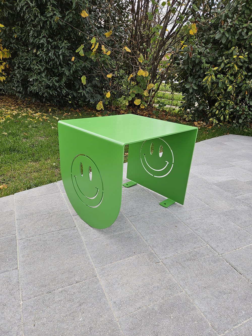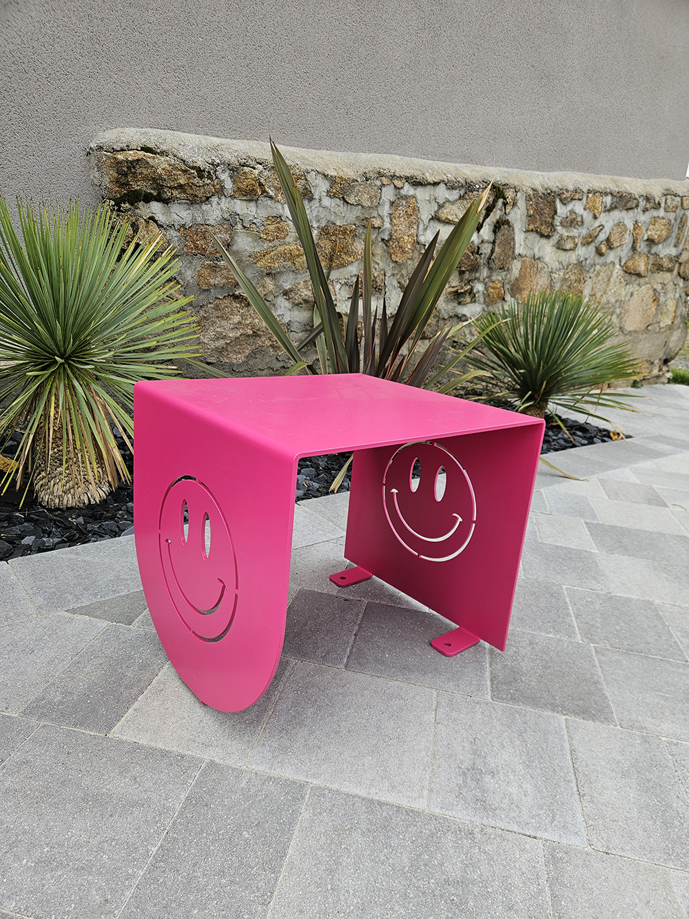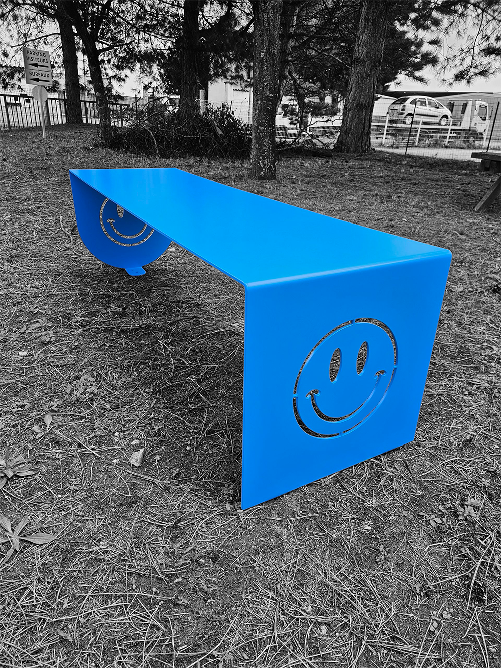 • Conception : Châssis acier 6 mm + pliage de renfort -+ Découpe laser Ludique Smiley