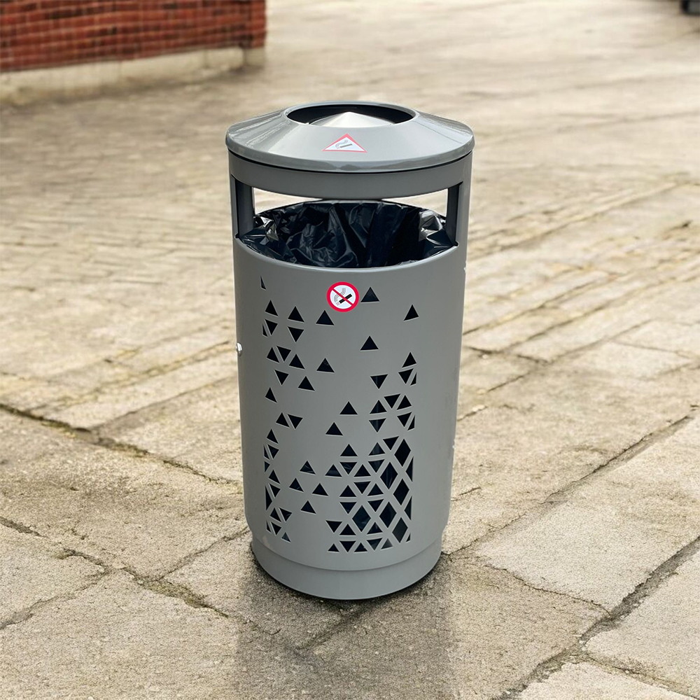 La corbeille urbaine Minimaliste nouveau design est conçue avec une finition décorative grâce à une découpe laser de précision. Des motifs découpés sont proposés mais le motif est personnalisable sur demande.